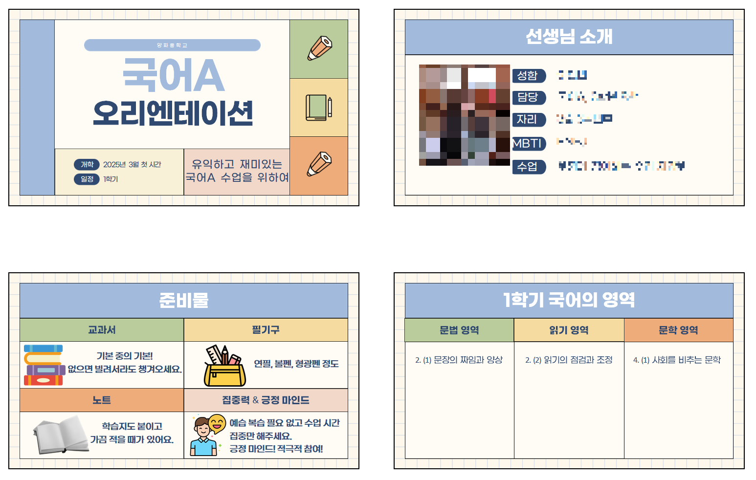 선생님 소개, 준비물 소개는 늘 빠지지 않고