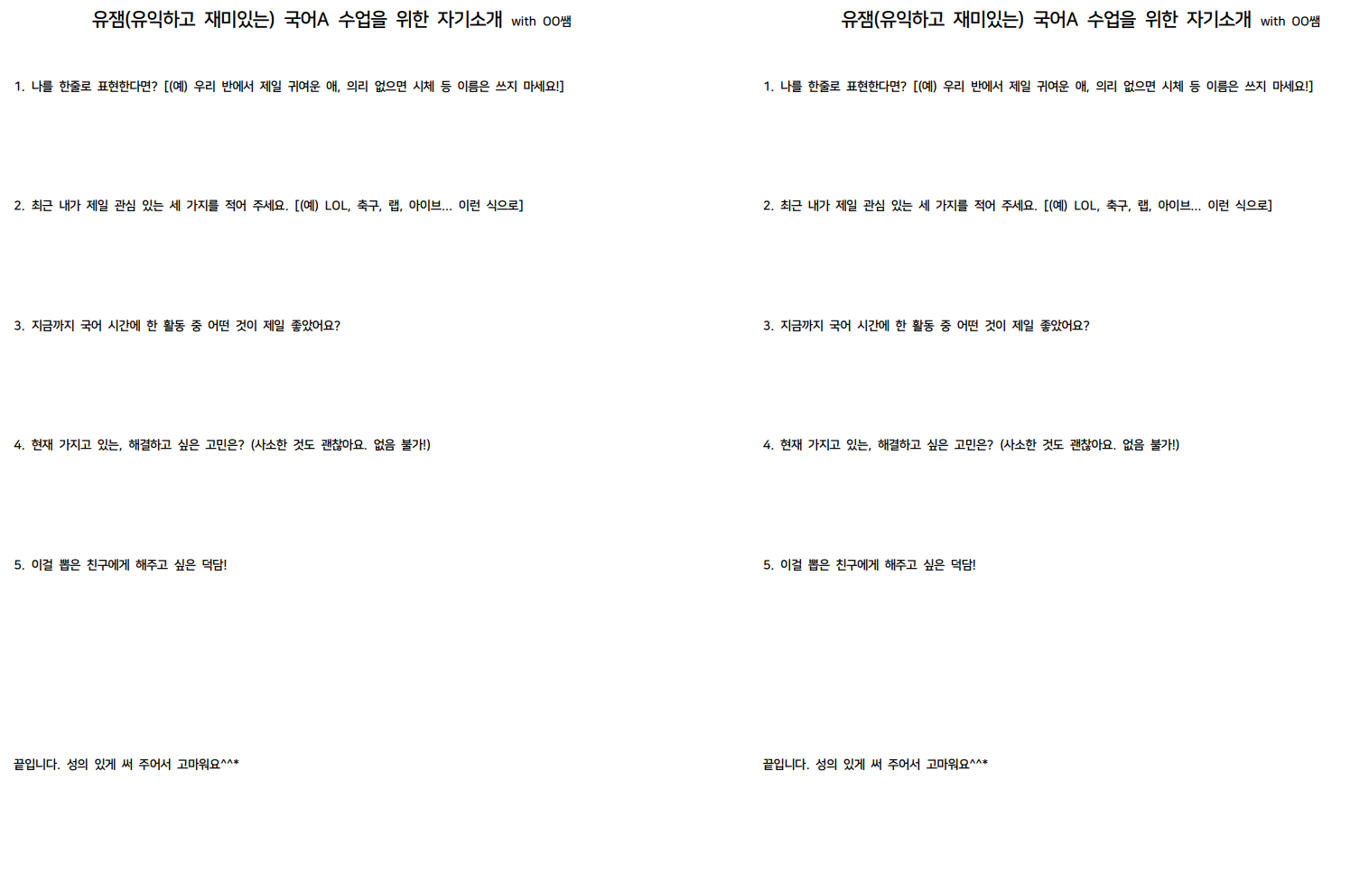 이렇게 학기초나 학기말에 사용하는 유용한 수업 활동!