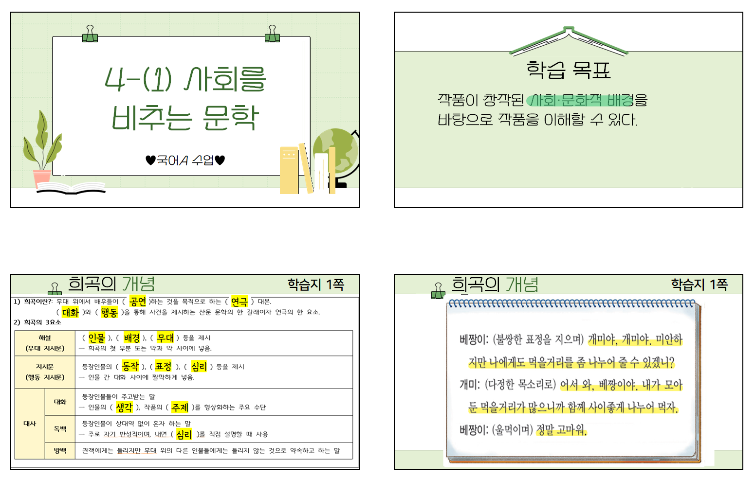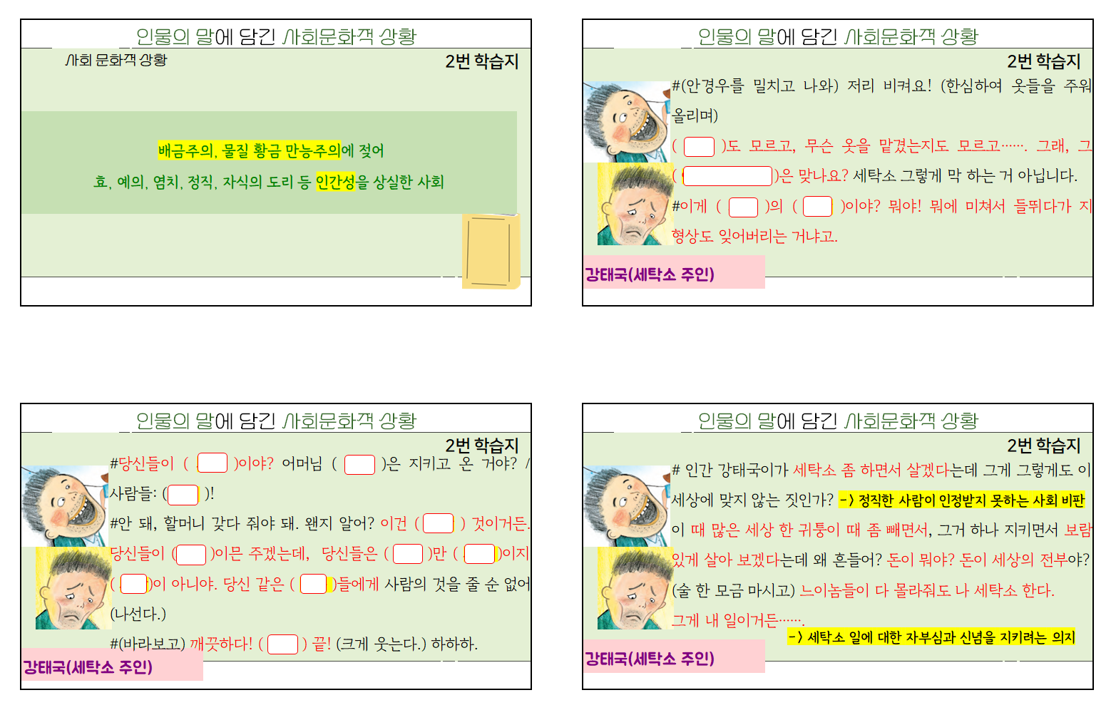 여기서부터 나오는 인물의 대사는 교과서를 보면서 밑줄을 치고