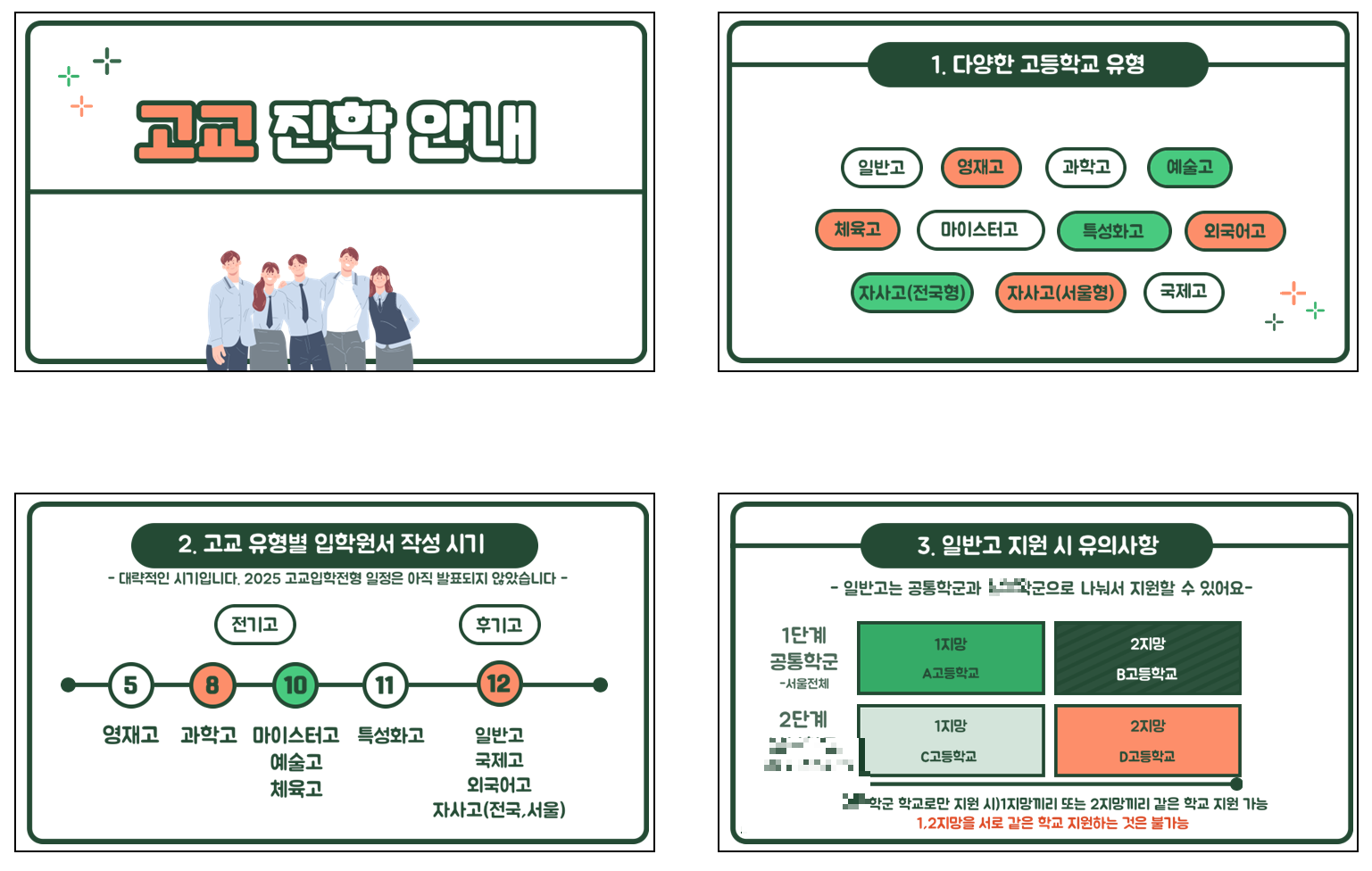 우선 진학 관련해서는 부장님이 주신 PPT 자료로 안내하고,